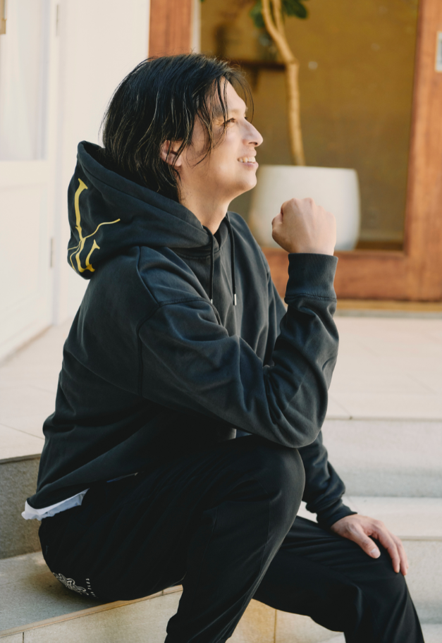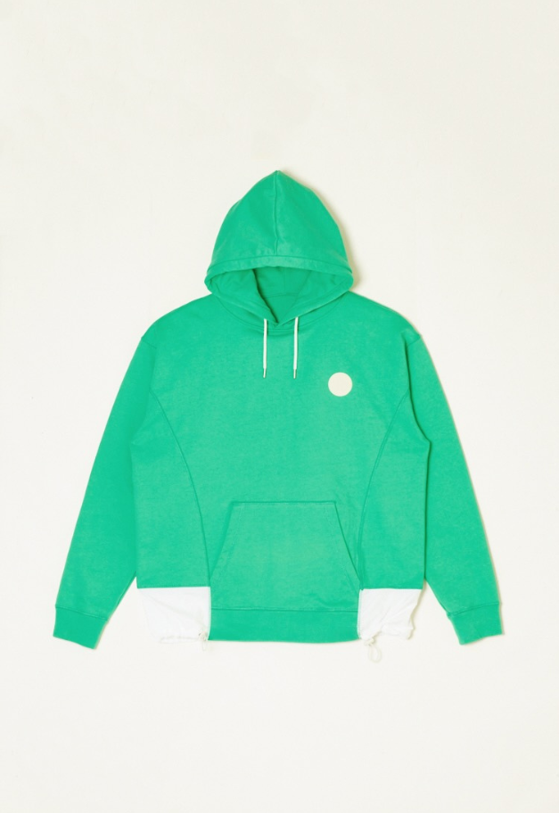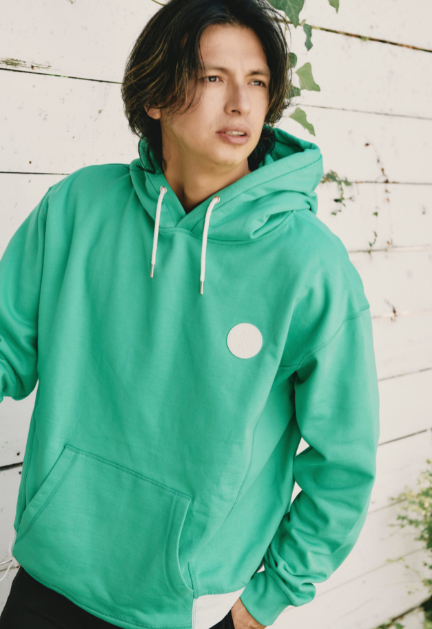 フロントのパッチとバックのビッグロゴで遊び心をプラス。シティでも活躍するカジュアルパーカー
