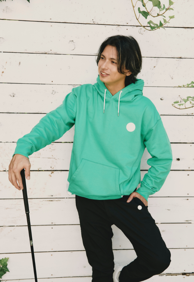 ◉グリーンカラーとサーフ感、バックのビッグロゴでゴルフシーンにも映えるデザイン