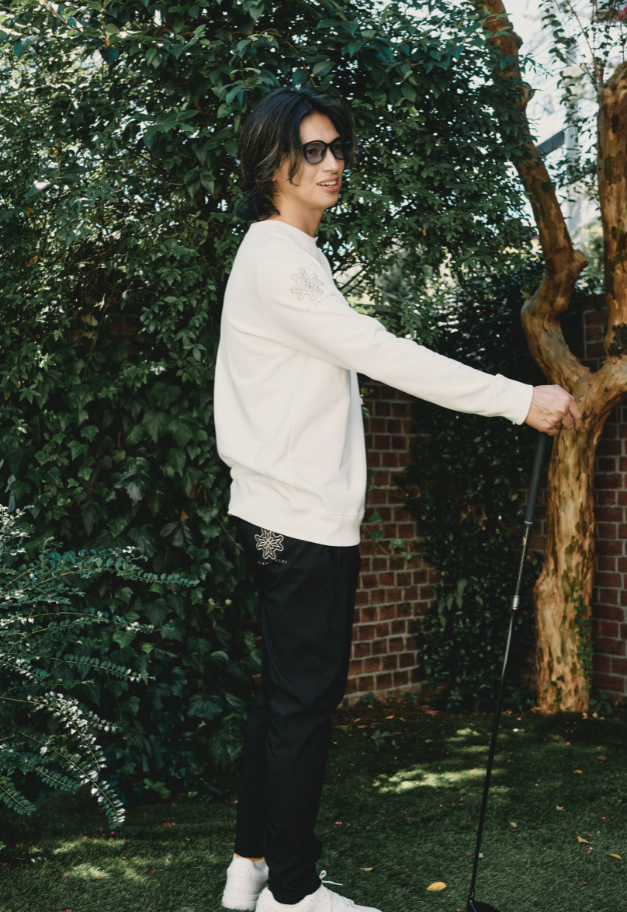 シーンを選ばないブラックに花柄ロゴ刺繍で高級感をプラス。機能性とシルエットを抑えた一本