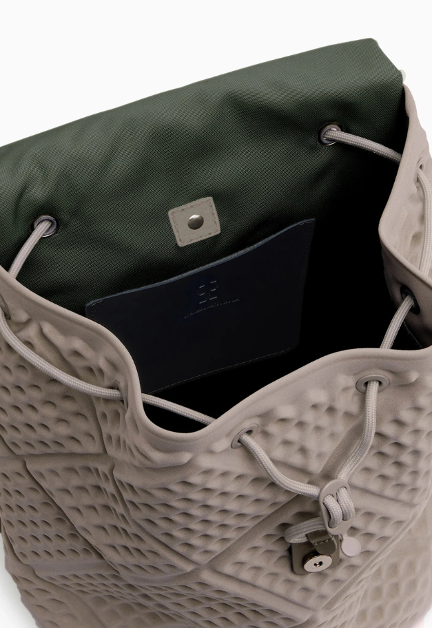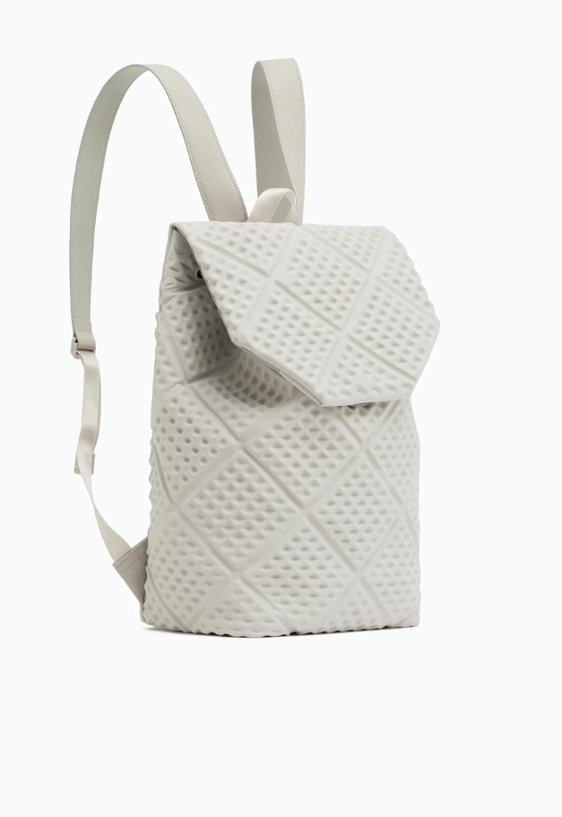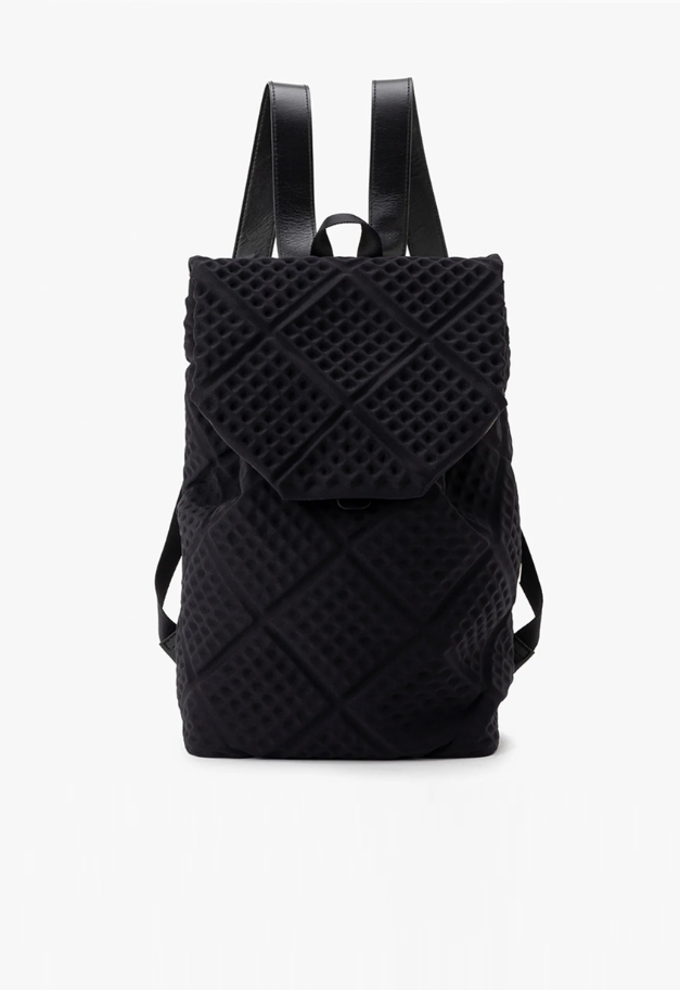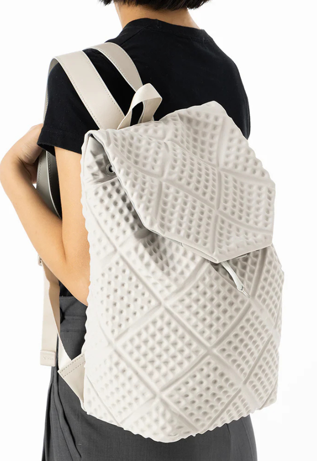 〈WAF-FUL〉ならではの、ソフトタッチな仕上がりでありながら自立する利点を生かした、非常に軽量なバッグパック。ワッフルスラブ構造により生まれた生地が、緩衝材のようにバッグの中 身を包み込むので、アクティブなシーンでも安心してお使いいただけます。シンプルかつスタイリッシュな、ビジネスにもプラ イベートにも活躍するバッグです。