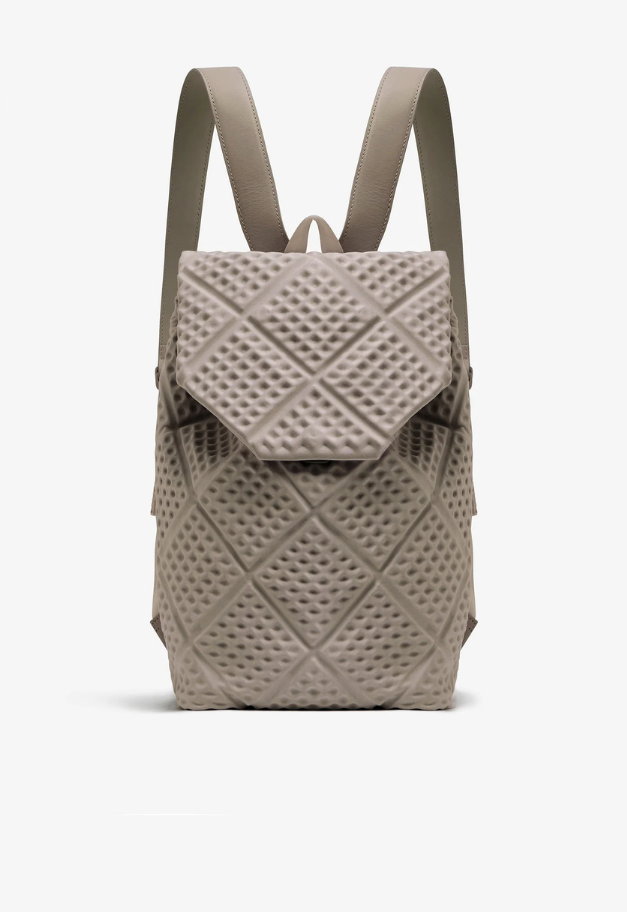 「柔らかいのに自立するバッグ」を目指してたどり着いたのは ワッフルのようにオーブンで焼き上げるような製法と建築で用いられるワッフルスラブ構造。 「WAF-FUL」の語尾の「FUL」は BEAUTIFULやPOWERFULと同じ接尾語の「FUL」で「満ちた」「充実した」という意味を持ち柔らかさと機能性に満ちたシリーズを表現しています。