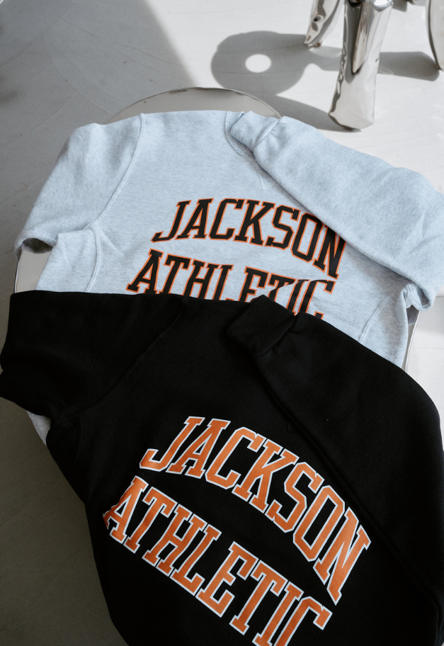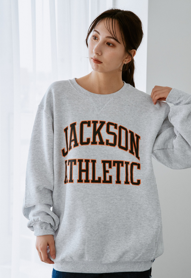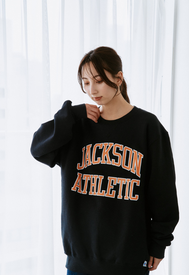 'JACKSON ATHLETIC'と題し、US企画のスウェットボディにコラボデザインをスクリーンプリントしたスウェットアイテム(クルー:2型/フーディー:1型)を展開✔️